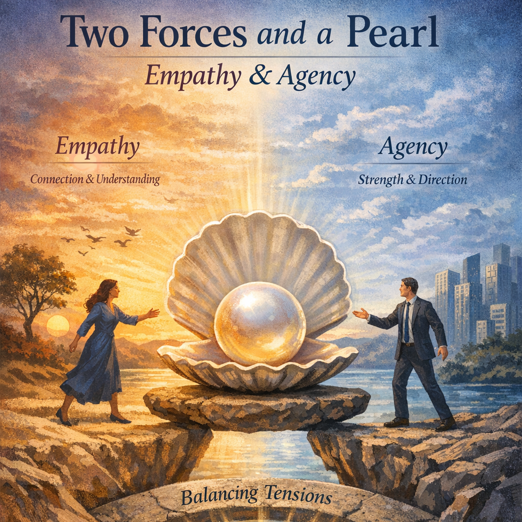 This is the invitation: reflect on the patterns that drive your own leadership. Notice the sources of agency you empower or withhold. Welcome the pearls that emerge from navigating inevitable tensions.